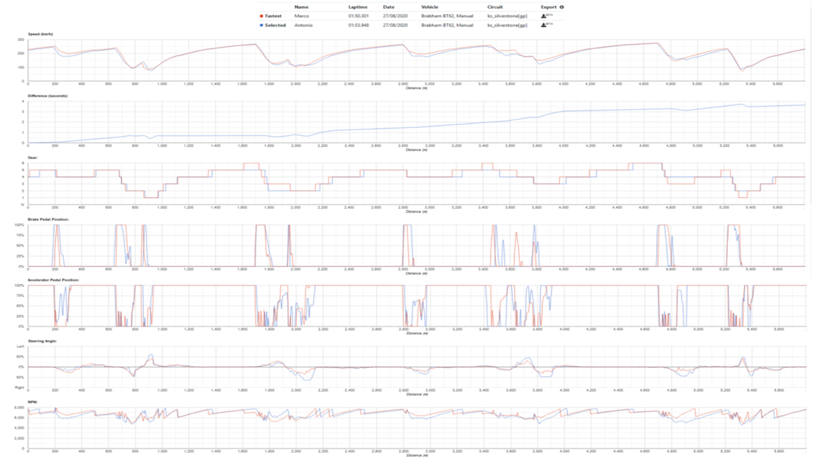 Con questo servizio vi è possibile consultare comodamente dal proprio smartphone i tempi sul giro, i vari settori, la velocità, le cambiate, le frenate, le accellerazioni, le sterzate, ottenendo tutte quelle informazioni necessarie per migliorarvi o battere gli altri piloti in competizione con voi.